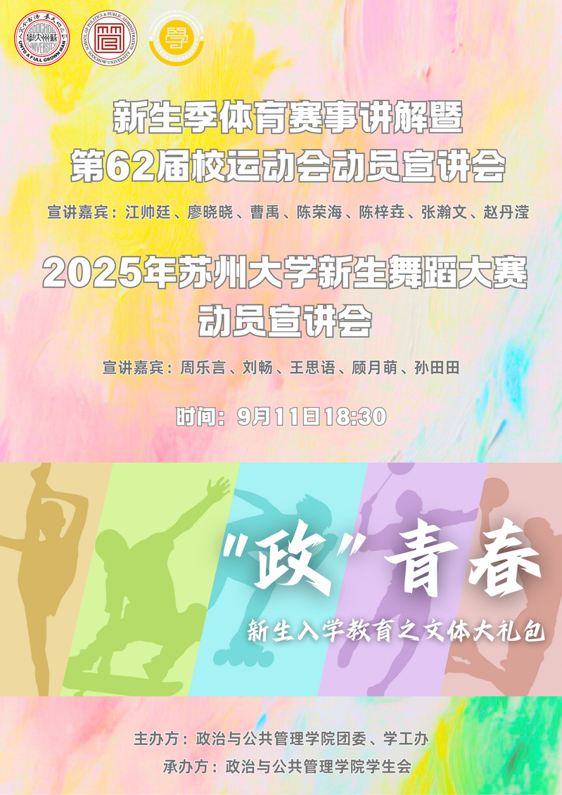 海报 | “政”青春——必威西汉姆联新生入学教育之文体大礼包