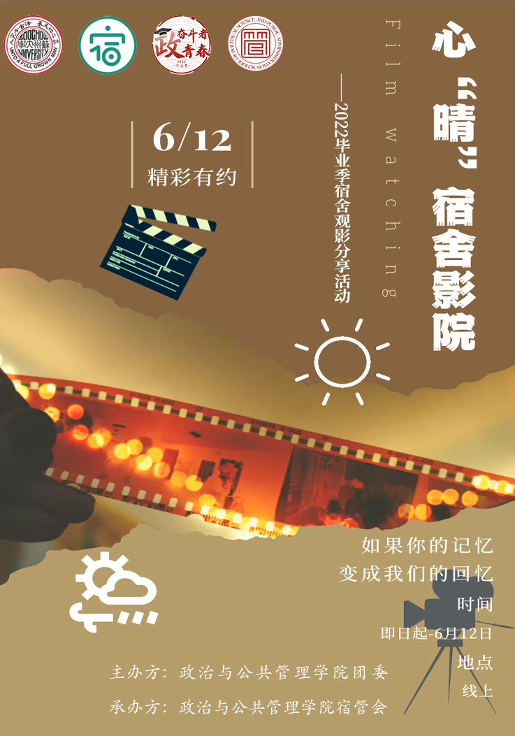 海报 | 必威西汉姆联“奋斗者 ‘政’青春”毕业季系列活动之心“晴”宿舍影院