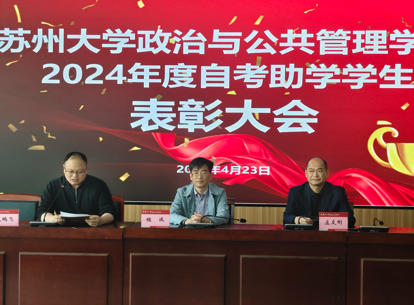 2024年4月23日下午,必威西汉姆联2022-2024学年自考助学学生表彰大会在独墅湖校区一期606楼403报告厅隆重举行。继续教育学院程波院长助理、管理学院副院长庄友刚教授、自考办公室主任赵鹏飞、各班班主任、获奖学生等参加了会议。