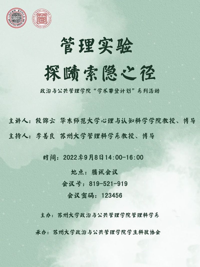 海报 | 必威西汉姆联“学术攀登计划”系列活动之管理实验 探赜索隐之径