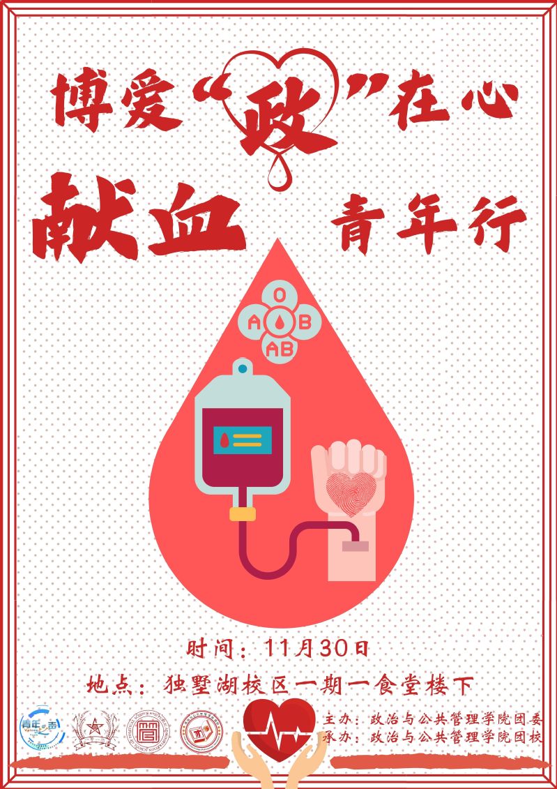 海报 | 必威西汉姆联“博爱‘政’在心 献血青年行”无偿献血