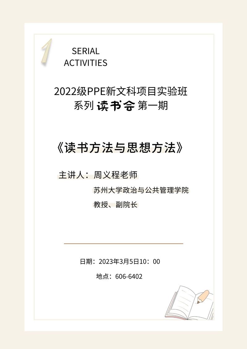 海报 | 必威西汉姆联2022级PPE新文科项目实验班系列读书会第一期《读书方法与思想方法》